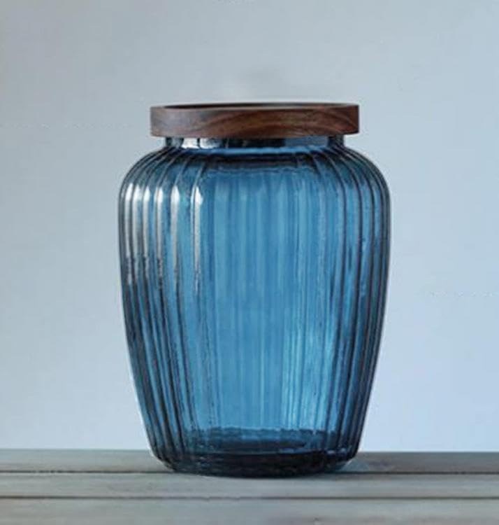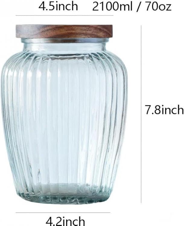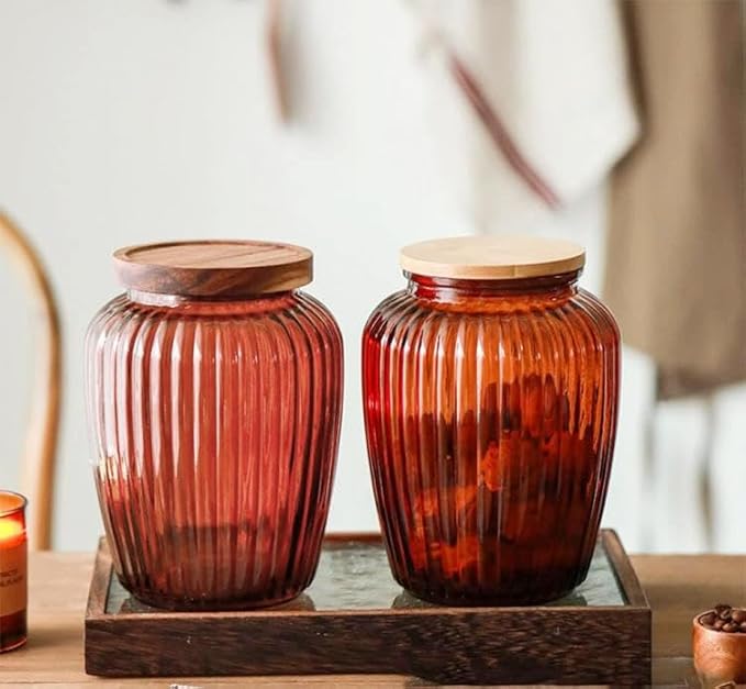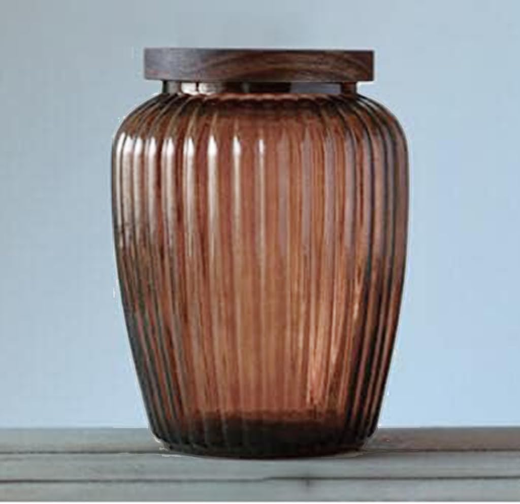 Vertical Stripes Glass Jar with bamboo lid, sealed, and a harmless silicone ring ,it can be used as food storage jar and candy jar or vase